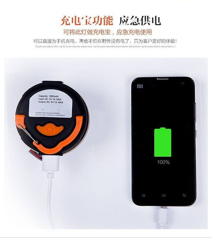 جنس بدنهی این چراغ از پلاستیک فشرده است که بسیار سبک، مقاوم در برابر ضربه و آب میباشد. این محصول دارای باتری داخلی از نوع لیتیومی 1800 میلی آمپری میباشد. این باتری توسط پورت USB موجود بر روی بدنه و کابل همراه چراغ، قابل شارژ میباشد. این چراغ میتواند نوری به شدت حداکثر 300 لومن را برای مدت 3 ساعت و نیز نوری معادل 50 لومن را به مدت حداقل 18 ساعت (مناسب برای داخل چادر) برای شما ایجاد کند. از این چراغ علاوه بر روشنایی میتوان در مواقع ضروری به عنوان پاور بانک استفاده نمود و انواع تلفن همراه و دستگاه های دیگر را با آن شارژ کرد. به علت حالت نیم دایرهای که این لامپ دارد نور را به صورت یکنواخت در فضا منتشر میکند.
