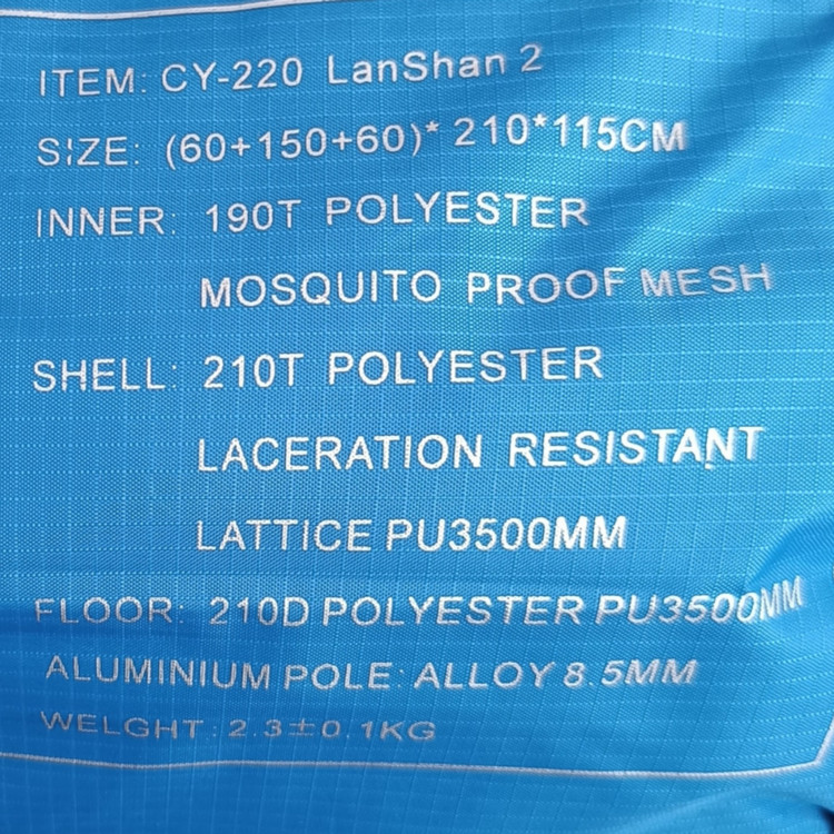 کف چادر: پلیاستر 210D با پوشش PU3500MM ضد سایش و مقاوم در برابر رطوبت