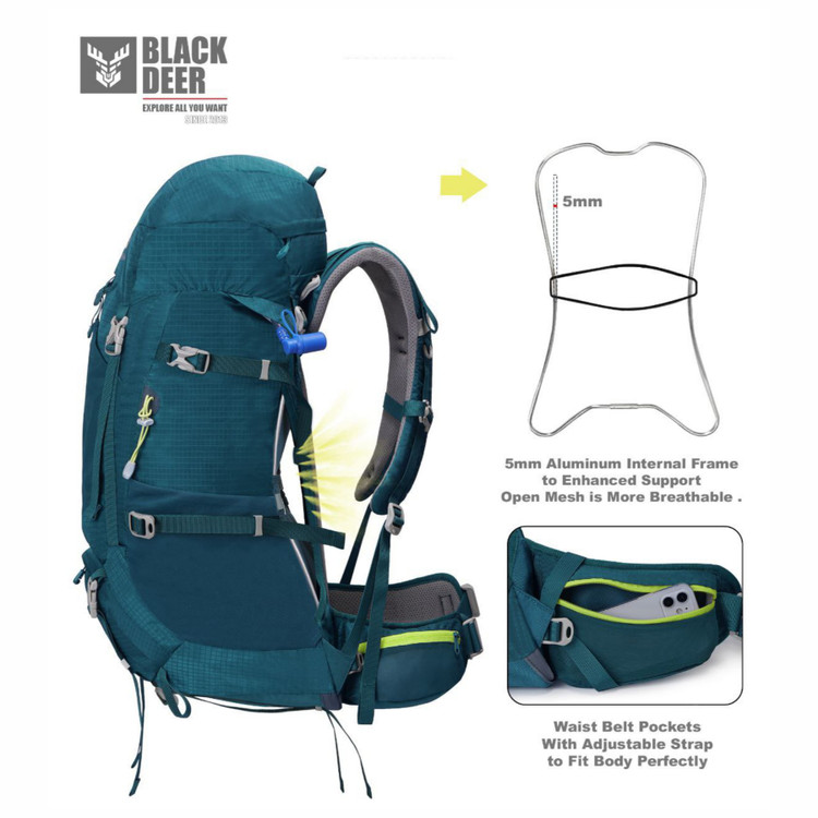 🎒کوله پشتی کوهنوردی 45+5 لیتری بلک دیر black deer مدل 8814 یک انتخاب عالی برای کوهنوردی، کمپینگ و سفرهای چند روزه است. این کوله پشتی با ظرفیت مناسب، وزن کم و ویژگی های کاربردی، همراهی مطمئن در فعالیت های مختلف شما خواهد بود.
